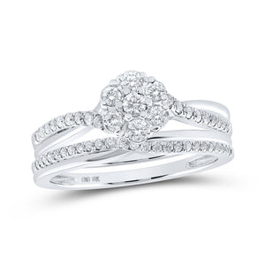 10kt White Gold Round Diamond Cluster Bridal Wedding Ring Band Set 1/2 Cttw