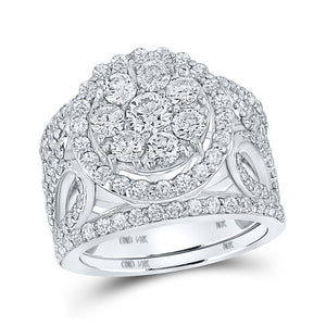 10kt White Gold Round Diamond Cluster Bridal Wedding Ring Band Set 3 Cttw