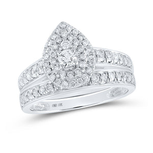 10kt White Gold Round Diamond Halo Bridal Wedding Ring Band Set 3/4 Cttw