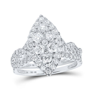 10kt White Gold Round Diamond Marquise-shape Bridal Wedding Ring Band Set 1-1/2 Cttw