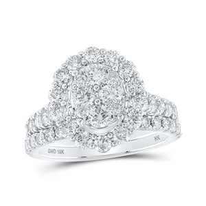 10kt White Gold Round Diamond Oval Bridal Wedding Ring Band Set 2 Cttw