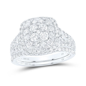10kt White Gold Round Diamond Square Halo Bridal Wedding Ring Band Set 1-1/2 Cttw