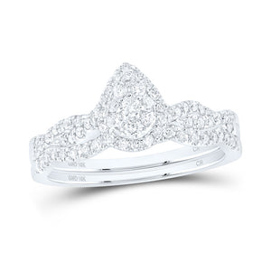 10kt White Gold Round Diamond Teardrop Bridal Wedding Ring Band Set 1/2 Cttw