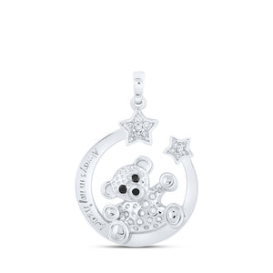 10kt White Gold Womens Round Diamond Bear Crescent Moon Animal Pendant 1/12 Cttw