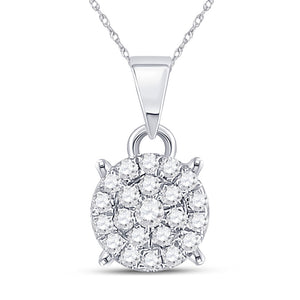 10kt White Gold Womens Round Diamond Circle Cluster Pendant 1/6 Cttw