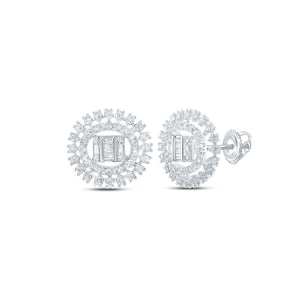 10kt White Gold Womens Round Diamond Circle Earrings 7/8 Cttw