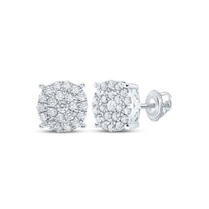 10kt White Gold Womens Round Diamond Cluster Earrings 7/8 Cttw