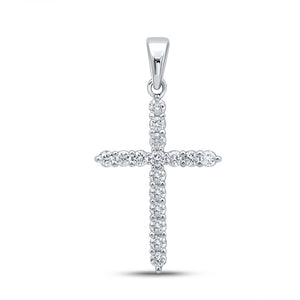 10kt White Gold Womens Round Diamond Cross Pendant 1/4 Cttw