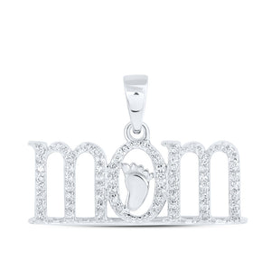 10kt White Gold Womens Round Diamond Foot Mom Pendant 1/5 Cttw