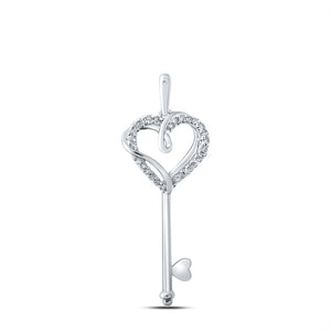 10kt White Gold Womens Round Diamond Heart Key Pendant 1/12 Cttw