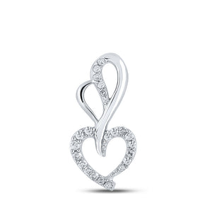 10kt White Gold Womens Round Diamond Heart Pendant 1/12 Cttw