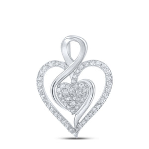 10kt White Gold Womens Round Diamond Heart Pendant 1/4 Cttw
