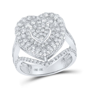 10kt White Gold Womens Round Diamond Heart Ring 2-1/3 Cttw