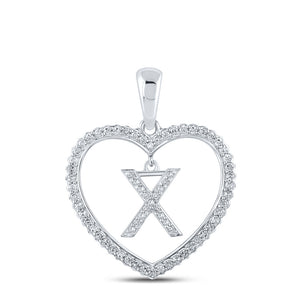 10kt White Gold Womens Round Diamond Heart X Letter Pendant 1/4 Cttw