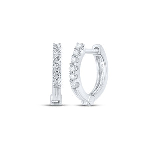 10kt White Gold Womens Round Diamond Hoop Earrings 1/10 Cttw
