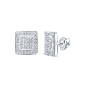 10kt White Gold Womens Round Diamond Square Earrings 1/5 Cttw