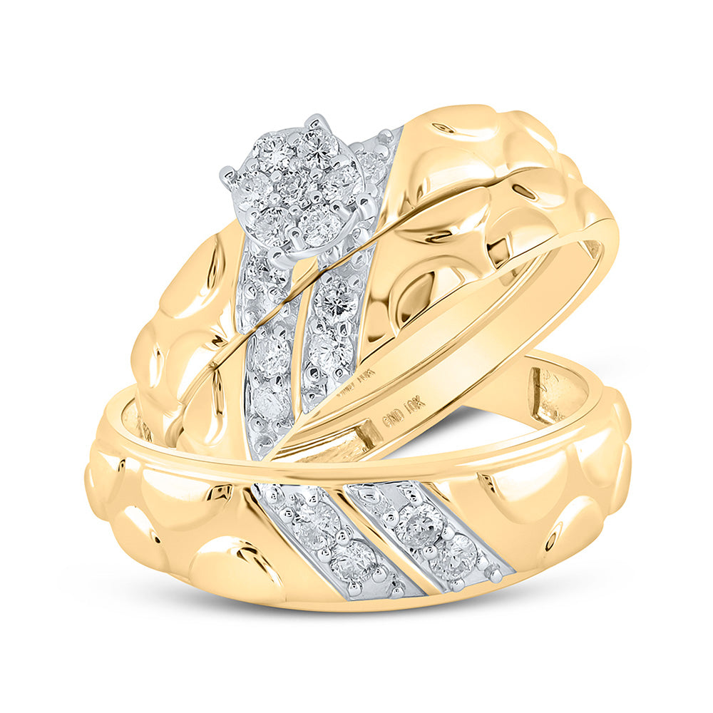 10kt Yellow Gold His Hers Round Diamond Cluster Matching Wedding Set 1/2 Cttw