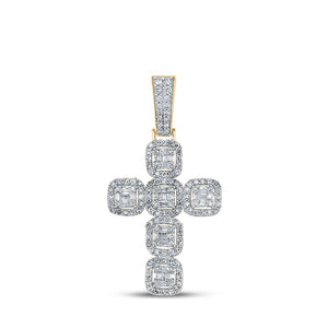 10kt Yellow Gold Mens Baguette Diamond Cross Charm Pendant 1-1/3 Cttw