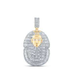10kt Yellow Gold Mens Baguette Diamond Pharaoh Charm Pendant 2-1/4 Cttw