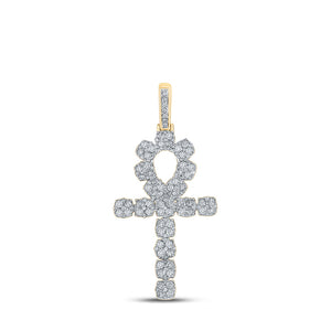 10kt Yellow Gold Mens Round Diamond Ankh Cross Charm Pendant 1-1/4 Cttw