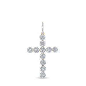 10kt Yellow Gold Mens Round Diamond Cross Charm Pendant 1-1/3 Cttw