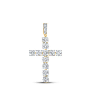 10kt Yellow Gold Mens Round Diamond Cross Charm Pendant 2-5/8 Cttw