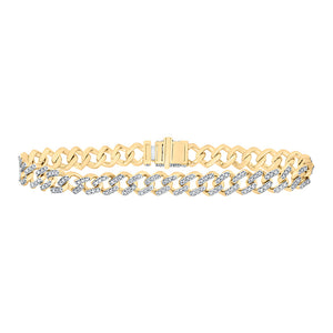 10kt Yellow Gold Mens Round Diamond Curb Link Bracelet 3 Cttw