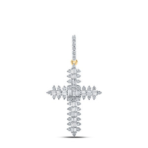 10kt Yellow Gold Womens Baguette Diamond Cross Pendant 7/8 Cttw