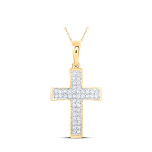 10kt Yellow Gold Womens Round Diamond Cross Pendant 1/5 Cttw