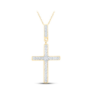 10kt Yellow Gold Womens Round Diamond Cross Pendant 1/10 Cttw
