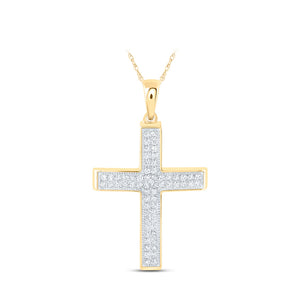 10kt Yellow Gold Womens Round Diamond Cross Pendant 3/8 Cttw