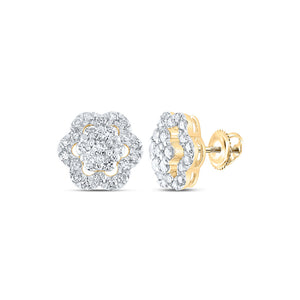 10kt Yellow Gold Womens Round Diamond Flower Cluster Earrings 1 Cttw