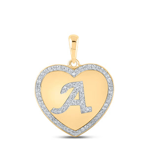 10kt Yellow Gold Womens Round Diamond Heart A Heart Pendant 1/4 Cttw