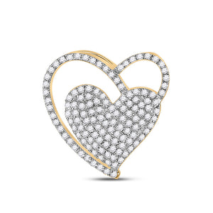 10kt Yellow Gold Womens Round Diamond Heart Pendant 3/8 Cttw