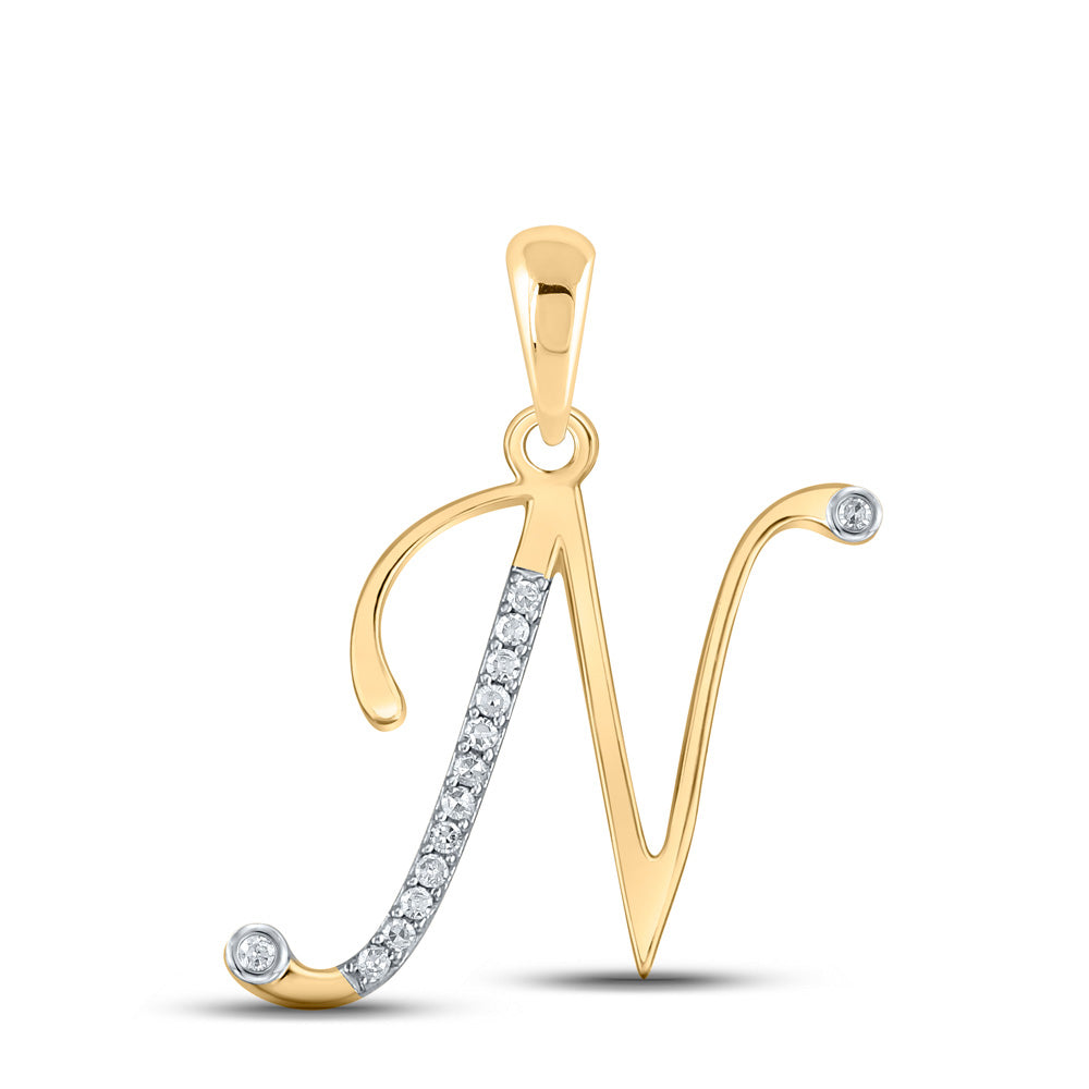 10kt Yellow Gold Womens Round Diamond N Initial Letter Pendant 1/20 Cttw