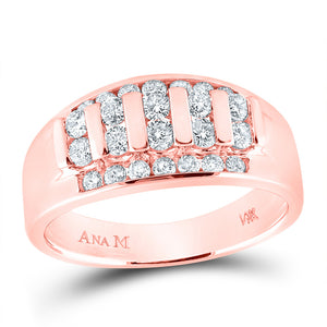 14kt Rose Gold Mens Round Diamond Wedding Band Ring 1 Cttw