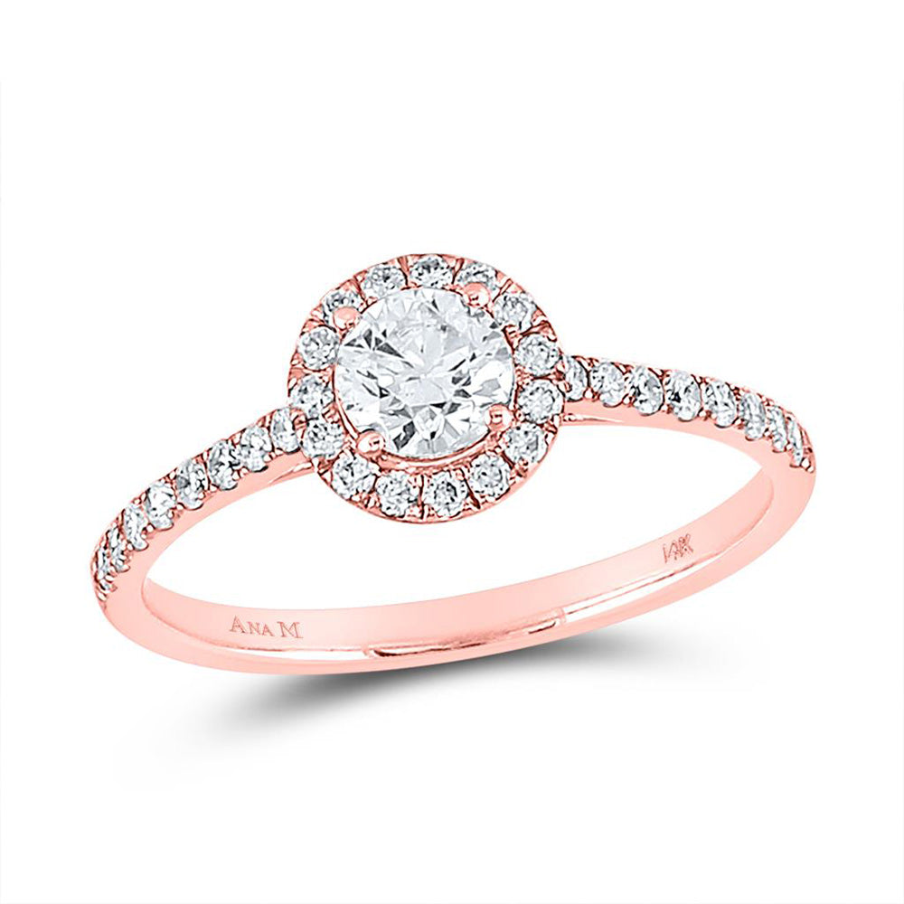 14kt Rose Gold Round Diamond Halo Bridal Wedding Engagement Ring 3/4 Cttw
