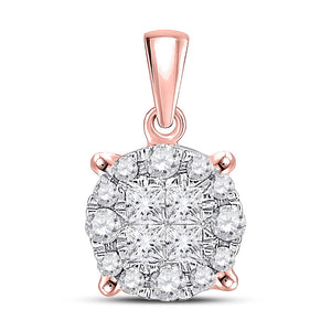 14kt Rose Gold Womens Princess Diamond Cluster Pendant 1/4 Cttw
