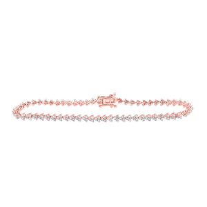 14kt Rose Gold Womens Round Diamond Single Row Tennis Bracelet 1-7/8 Cttw