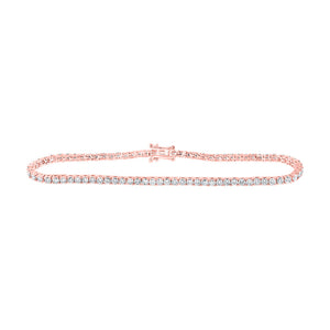 14kt Rose Gold Womens Round Diamond Single Row Tennis Bracelet 3-3/8 Cttw