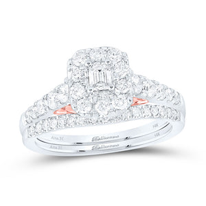 14kt Two-tone Gold Emerald Diamond Halo Bridal Wedding Ring Band Set 1 Cttw