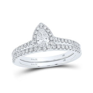 14kt Two-tone Gold Pear Diamond Halo Bridal Wedding Ring Band Set 7/8 Cttw