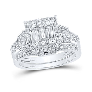 14kt White Gold Baguette Diamond Bridal Wedding Ring Band Set 7/8 Cttw
