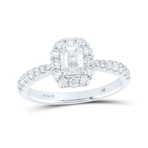 14kt White Gold Emerald Diamond Halo Bridal Wedding Engagement Ring 1-1/4 Cttw