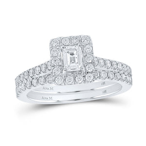 14kt White Gold Emerald Diamond Halo Bridal Wedding Ring Band Set 1 Cttw