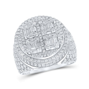 14kt White Gold Mens Baguette Diamond Circle Ring 3-7/8 Cttw