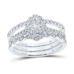 14kt White Gold Oval Diamond 3-Piece Bridal Wedding Ring Band Set 1 Cttw