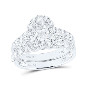 14kt White Gold Oval Diamond Bridal Wedding Ring Band Set 2 Cttw