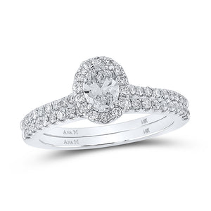 14kt White Gold Oval Diamond Halo Bridal Wedding Ring Band Set 1 Cttw