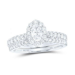 14kt White Gold Oval Diamond Halo Bridal Wedding Ring Band Set 1 Cttw